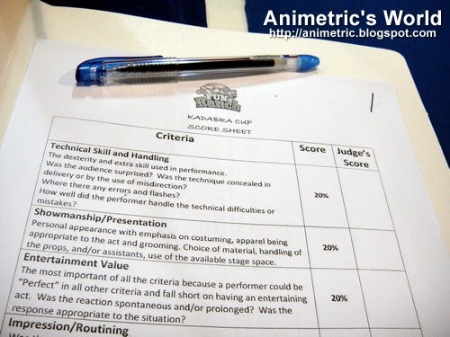 I was given a scoring sheet along with my fellow judges. There were five of us judging, three were from the magic industry which included the popular magician Jeffrey Tam — who has won several international magic competitions. The other two represented lay people, and I was one of them. You can watch a sample of Jeffrey Tam’s performance HERE.