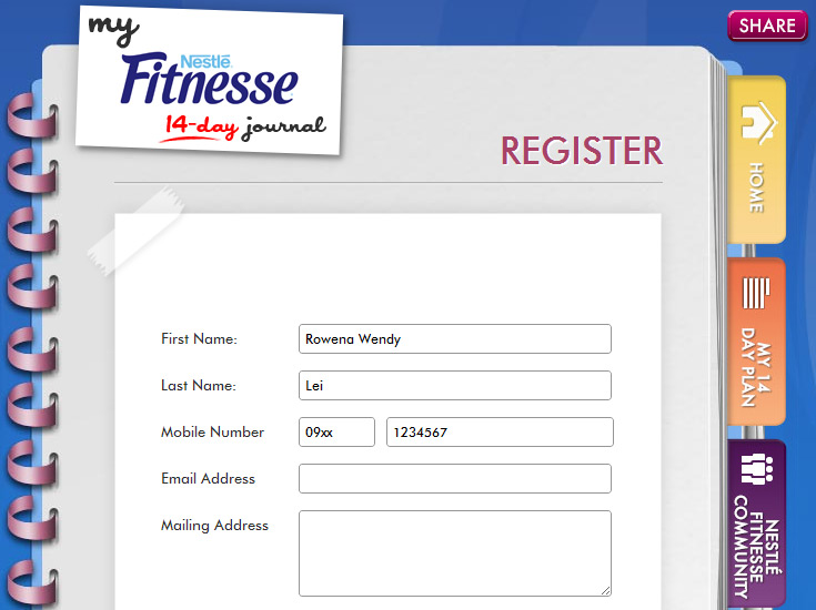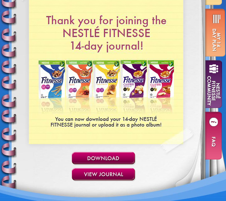 I kept a food diary and listed down every single thing I ate. I tried my best to limit myself to 1500 calories a day, lower if I could manage. I would read the nutrition facts of the food and drink I would take in — if it was available, or I’d research online so I could estimate the number of calories. I did it manually. I wrote down everything with a pen in a notebook. But here’s the thing — now you can easily keep a food journal to ensure that you stick to your healthy eating program just by using the NESTLÉ FITNESSE 14-Day Journal Facebook App. You will have to like the NESTLÉ FITNESSE Philippines Facebook Page first so you can access the app.