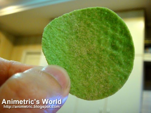 I think I like Pringles Seaweed best. Check out that green-colored chip. It’s lightly seasoned with white pepper and paprika. It’s hard to stop eating once you start. The Grilled Shrimp chips are pink, while Soft-Shell Crab sports the normal original Pringles color. All the variants have one thing in common: they’re all very tasty!