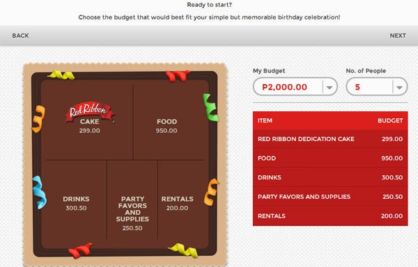 In our case, since we just wanted to chill at home for our daughter’s birthday, we just needed cake, food and drinks. I set the budget at P1,000. The Birthday Budget Planner automatically set P299 for the cake (which is how much Red Ribbon’s 8 x 8 Junior Dedication Cake costs) then P500.50 for food then P200.50 for drinks.