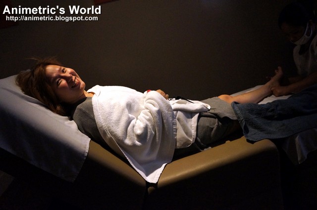 We started The Spa Reflexology by changing into robes (which is optional) and relaxing on the recliners. Then we dipped our feet in soothing hot water which smelled kind of minty.